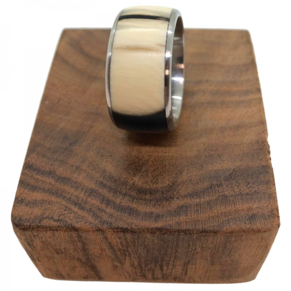 Wir stellen aus einem Stück Geschichte, vermischt mit bestem Resin und Edelstahl einen Ring her. Schick und elegand, ein Unikat in jeder Hinsicht. Mammutelfenbein ist glatt und weich, es schmiegt sich sanft an die Haut an und hinterlässt ein Gefühl Urzeitlicher Geschichte. Das Besondere sind die feinen Maserungen, verbunden mit natürlicher Rissbildung, welches das Resin abrundet.